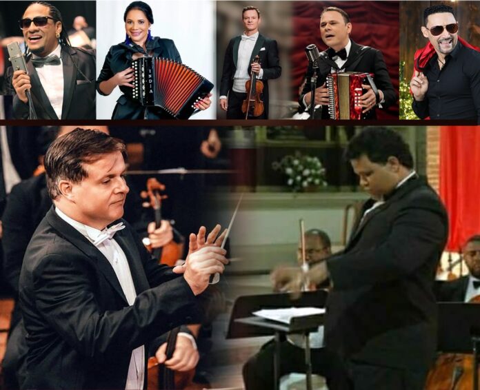 Mientras que la Orquesta Sinfónica del Cibao, que dirige el maestro Ruddy Capellán junto a la filarmónica alemana regirá los temas del perico ripiao sinfónico, con la participación de los artistas Krisspy, La India Canela, El Prodigio y Robert Liriano.