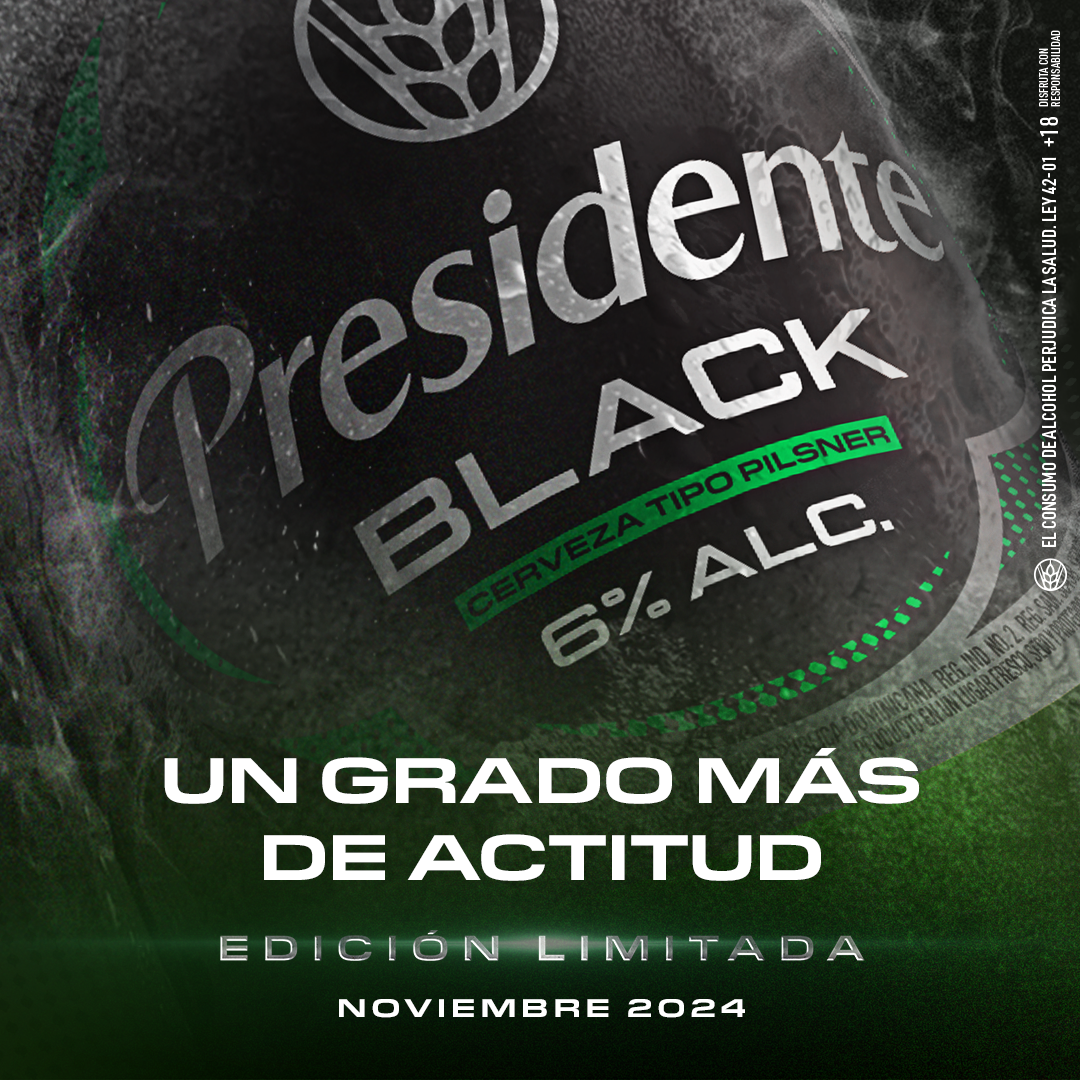 Presidente Black anuncia su regreso por tiempo limitado con su característico sabor y 6.0% de alcohol. Perfecta para brindar a los consumidores un grado más de actitud.