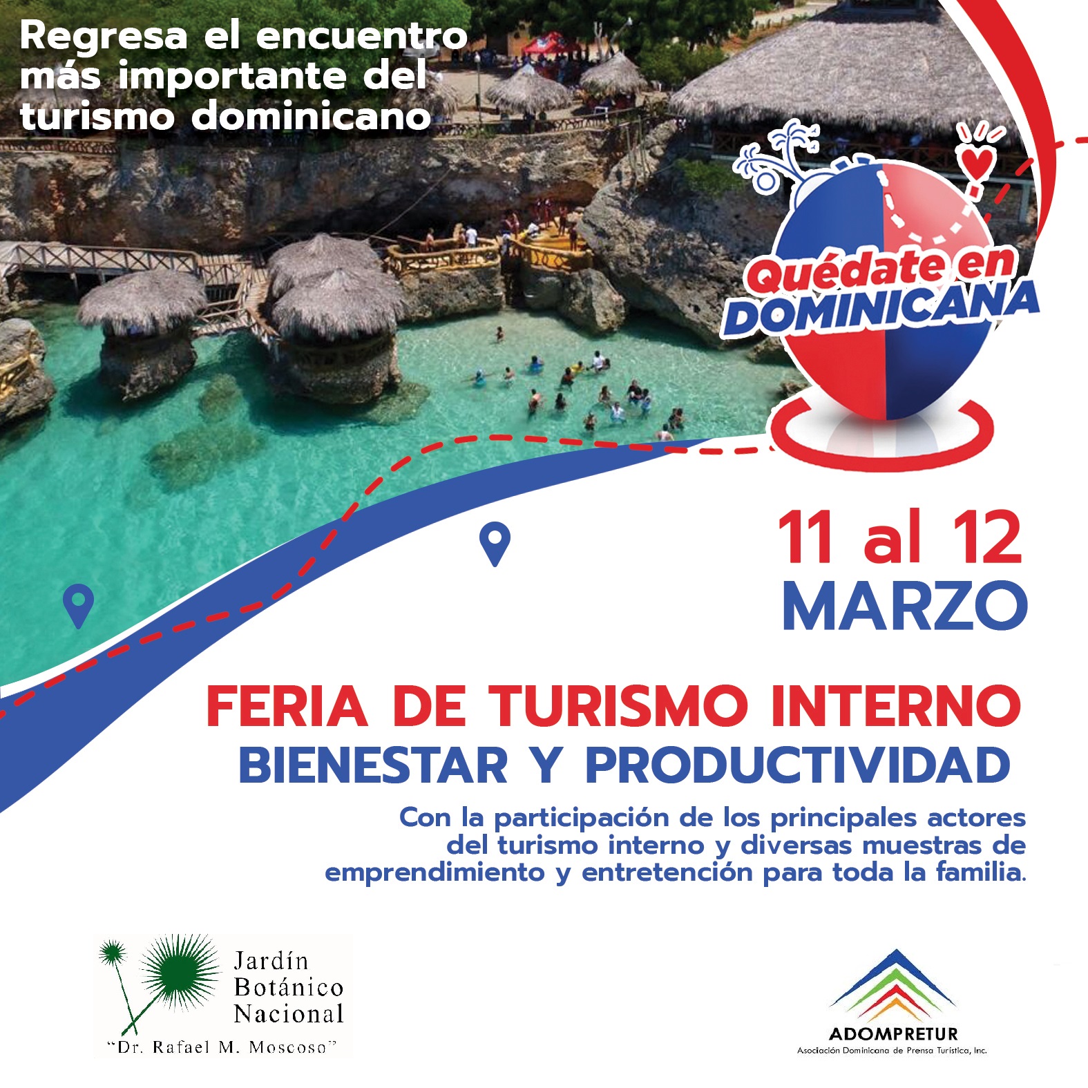 Santo Domingo.- Con el apoyo de la Asociación Dominicana de Prensa Turística (ADOMPRETUR) y otras entidades ligadas al turismo ha sido anunciada la 2da edición de la Feria del Turismo Interno, Bienestar y Productividad “Quédate en Dominicana” a celebrarse los días 11 y 12 de marzo en el Jardín Botánico Nacional, Rafael M. Moscoso.
