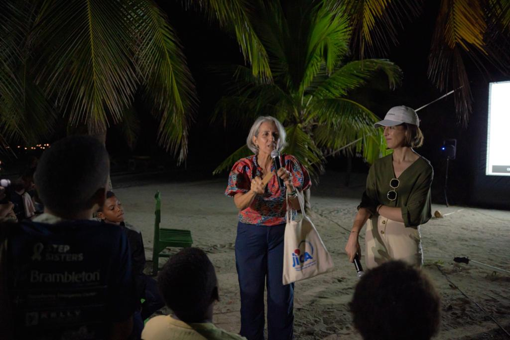 El filme elegido para este día histórico fue el documental dominicano Isla de Plástico, grabado en parte en esta misma área y producido por la actriz Nashla Bogaert, quien visitó la isla en el marco de esta iniciativa, como muestra de su compromiso con la protección del medioambiente y conciencia a la comunidad sobre el manejo responsable de residuos.