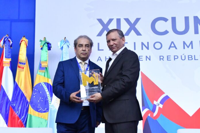 El galardón fue entregado por Jaime Narváez, presidente del Comité Internacional de la Cumbre Latinoamericana, quien resaltó el liderazgo que ha tenido el también presidente del Consejo de Administración de la Refinería Dominicana de Petróleo (Refidomsa), teniendo a su cargo la dirección de campañas políticas en República Dominicana y otros países de Latinoamérica.